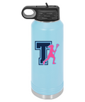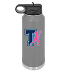 32 oz stainless steel, double-wall insulated water bottle. Screw on lid features an easy flip top, soft rubber finger hold, raised ridges for easy opening and closing, and a rigid & removable straw for easy cleaning.