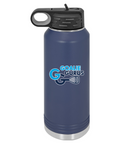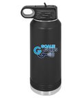 32 oz stainless steel, double-wall insulated water bottle. Screw on lid features an easy flip top, soft rubber finger hold, raised ridges for easy opening and closing, and a rigid & removable straw for easy cleaning.