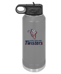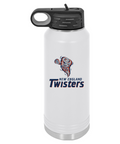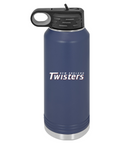 32 oz stainless steel, double-wall insulated water bottle. Screw on lid features an easy flip top, soft rubber finger hold, raised ridges for easy opening and closing, and a rigid & removable straw for easy cleaning.