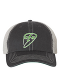 Front: 100% Cotton, garment-washed twill Back: 100% Polyester, soft mesh Unstructured, low-profile, six-panel Pre-curved visor, green undersvisor
