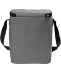 Designed with a vertical shape to fit in any worker's or student's locker, this seam-sealed cooler delivers by keeping your favorite beverages chilled and handy.. 600D polyester. Rain Defender durable water repellent (DWR). Seam-sealed to prevent ice from leaking as it melts. Fully insulated main compartment can hold up to twelve 12-ounce cans. Front zippered pocket. Adjustable shoulder strap. Carhartt label sewn on front. Dimensions: 11"h x 8"w x 5.75"l. Note: Bags not intended for use by children 12 and under.
