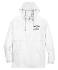 1.7 oz/yd2 / 58 gsm, 100% polyester taffeta Water-resistant finish Center front coil zipper with autolock slider Lower front concealed zippered pockets Elasticized cuffs Rollaway adjustable hood Adjustable shockcord at hem Deco Eligible
