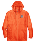 1.7 oz/yd2 / 58 gsm, 100% polyester taffeta Water-resistant finish Center front coil zipper with autolock slider Lower front concealed zippered pockets Elasticized cuffs Rollaway adjustable hood Adjustable shockcord at hem Deco Eligible