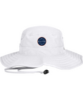 100% polyester, Unisex, Unstructured, Performance sweatband, UPF 30 Ultra-violet protection (White is UPF 25), Sewn eyelets, Adjustable drawcord and toggle at back