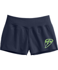 On-trend and versatile, this short can easily transition from an early morning training to an afternoon coffee run.. 3.5-ounce, 90/10 poly/spandex. 8.3-ounce, 86/14 poly/spandex knit waistband with exterior cell phone pocket. 100% polyester built-in liner. Removable tag for comfort and relabeling. 3.5-inch inseam
