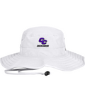 100% polyester, Unisex, Unstructured, Performance sweatband, UPF 30 Ultra-violet protection (White is UPF 25), Sewn eyelets, Adjustable drawcord and toggle at back