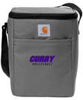 Designed with a vertical shape to fit in any worker's or student's locker, this seam-sealed cooler delivers by keeping your favorite beverages chilled and handy.. 600D polyester. Rain Defender durable water repellent (DWR). Seam-sealed to prevent ice from leaking as it melts. Fully insulated main compartment can hold up to twelve 12-ounce cans. Front zippered pocket. Adjustable shoulder strap. Carhartt label sewn on front. Dimensions: 11"h x 8"w x 5.75"l. Note: Bags not intended for use by children 12 and under.