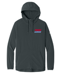 Developed for training and beyond, Nike Pro is all about feeling confident and doing your best. This breathable jacket steps up with Dri-FIT moisture management technology for optimal performance. Details include an adjustable hood, dyed-to-match drawcords, exposed dyed-to-match zipper, zippered front pockets and elastic cuffs. Navy/Game Royal has a contrast color hood panel. The contrast heat transfer Swoosh logo is on the left sleeve. Includes a Nike Pro branded elastic back hem. Made of 3.5-ounce, 80/20 polyester/elastane Dri-FIT fabric with at least 75% recycled content.