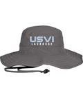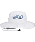 100% polyester, Unisex, Unstructured, Performance sweatband, UPF 30 Ultra-violet protection (White is UPF 25), Sewn eyelets, Adjustable drawcord and toggle at back