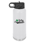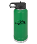 32 oz stainless steel, double-wall insulated water bottle. Screw on lid features an easy flip top, soft rubber finger hold, raised ridges for easy opening and closing, and a rigid & removable straw for easy cleaning.
