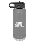 32 oz stainless steel, double-wall insulated water bottle. Screw on lid features an easy flip top, soft rubber finger hold, raised ridges for easy opening and closing, and a rigid & removable straw for easy cleaning.