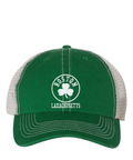 Front: 100% Cotton, garment-washed twill Back: 100% Polyester, soft mesh Unstructured, low-profile, six-panel Pre-curved visor, green undersvisor