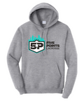 Classic hoodie with 8-ounce, 50/50 cotton/poly, double-needle stitching at waistband and cuffs, and double-lined hood with dyed-to-match drawcord.