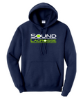 Classic hoodie with 8-ounce, 50/50 cotton/poly, double-needle stitching at waistband and cuffs, and double-lined hood with dyed-to-match drawcord.
