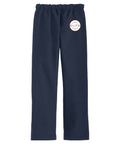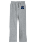 50/50 cotton/poly, Covered elastic waistband with drawcord, Slightly tapered leg with open bottom