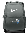 This versatile backpack is ideal for packing everything you need to get you through a busy training day or when you're away from your locker, gym or home..  100% recycled polyester dobby.  Back panel and shoulder straps are padded for comfortable carrying.  Multiple pockets provide organized small-item storage.  Zippered main compartment offers spacious and secure storage.  Plush-lined, zippered pocket for headphones or electronics.  Padded sleeve safely stores a laptop.  A water-resistant coating on bottom panel helps keep gear dry.  Contrast Swoosh design trademark.  Laptop sleeve fits most 15" laptops.  Dimensions: 18"h x 12"w x 7"d; Approx. 1,465 cubic inches.  Note: Bags not intended for use by children 12 and under.