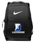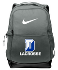 This versatile backpack is ideal for packing everything you need to get you through a busy training day or when you're away from your locker, gym or home.. 100% recycled polyester dobby. Back panel and shoulder straps are padded for comfortable carrying. Multiple pockets provide organized small-item storage. Zippered main compartment offers spacious and secure storage. Plush-lined, zippered pocket for headphones or electronics. Padded sleeve safely stores a laptop. A water-resistant coating on bottom panel helps keep gear dry. Contrast Swoosh design trademark. Laptop sleeve fits most 15" laptops. Dimensions: 18"h x 12"w x 7"d; Approx. 1,465 cubic inches. Note: Bags not intended for use by children 12 and under.
