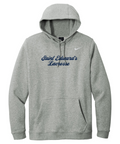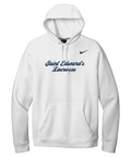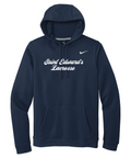A closet staple, this hoodie combines classic Nike style with the soft comfort of brushed-back fleece. A jersey-lined, 3-panel hood with dyed-to-match drawstrings offers adjustable coverage. Rib knit cuffs and hem. Front pouch pocket. A contrast Swoosh design trademark is embroidered on left chest. Made of 8.2-ounce, 80/20 cotton/polyester with a 100% cotton hood lining.
