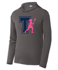 This lightweight hooded pullover locks in color and wicks moisture. It’s versatile enough for year-round wear.