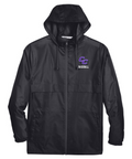 1.7 oz/yd2 / 58 gsm, 100% polyester taffeta Water-resistant finish Center front coil zipper with autolock slider Lower front concealed zippered pockets Elasticized cuffs Rollaway adjustable hood Adjustable shockcord at hem Deco Eligible