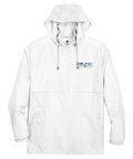 1.7 oz/yd2 / 58 gsm, 100% polyester taffeta Water-resistant finish Center front coil zipper with autolock slider Lower front concealed zippered pockets Elasticized cuffs Rollaway adjustable hood Adjustable shockcord at hem Deco Eligible