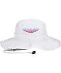 100% polyester, Unisex, Unstructured, Performance sweatband, UPF 30 Ultra-violet protection (White is UPF 25), Sewn eyelets, Adjustable drawcord and toggle at back