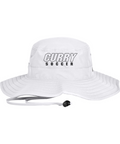 100% polyester, Unisex, Unstructured, Performance sweatband, UPF 30 Ultra-violet protection (White is UPF 25), Sewn eyelets, Adjustable drawcord and toggle at back
