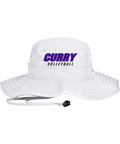 100% polyester, Unisex, Unstructured, Performance sweatband, UPF 30 Ultra-violet protection (White is UPF 25), Sewn eyelets, Adjustable drawcord and toggle at back