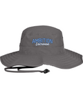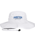 100% polyester, Unisex, Unstructured, Performance sweatband, UPF 30 Ultra-violet protection (White is UPF 25), Sewn eyelets, Adjustable drawcord and toggle at back