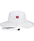 100% polyester, Unisex, Unstructured, Performance sweatband, UPF 30 Ultra-violet protection (White is UPF 25), Sewn eyelets, Adjustable drawcord and toggle at back