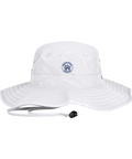 100% polyester, Unisex, Unstructured, Performance sweatband, UPF 30 Ultra-violet protection (White is UPF 25), Sewn eyelets, Adjustable drawcord and toggle at back