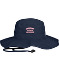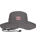 100% polyester, Unisex, Unstructured, Performance sweatband, UPF 30 Ultra-violet protection (White is UPF 25), Sewn eyelets, Adjustable drawcord and toggle at back