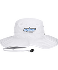 100% polyester, Unisex, Unstructured, Performance sweatband, UPF 30 Ultra-violet protection (White is UPF 25), Sewn eyelets, Adjustable drawcord and toggle at back
