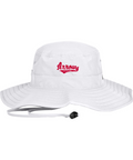 100% polyester, Unisex, Unstructured, Performance sweatband, UPF 30 Ultra-violet protection (White is UPF 25), Sewn eyelets, Adjustable drawcord and toggle at back
